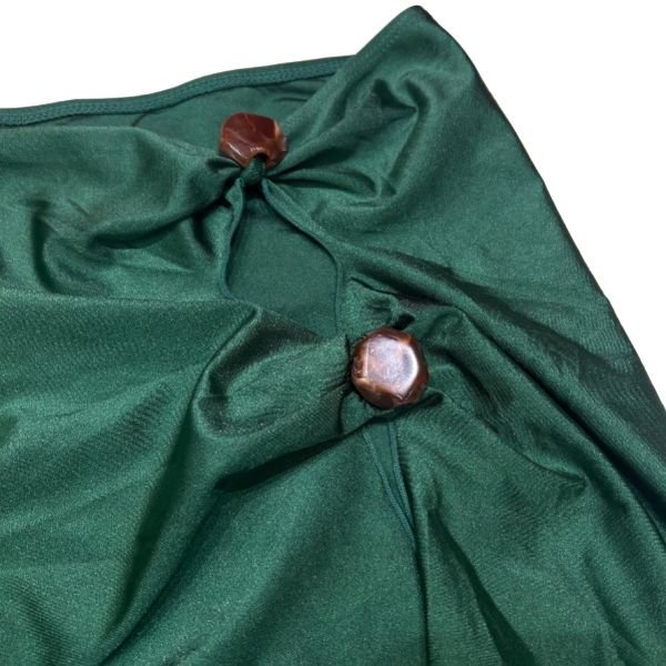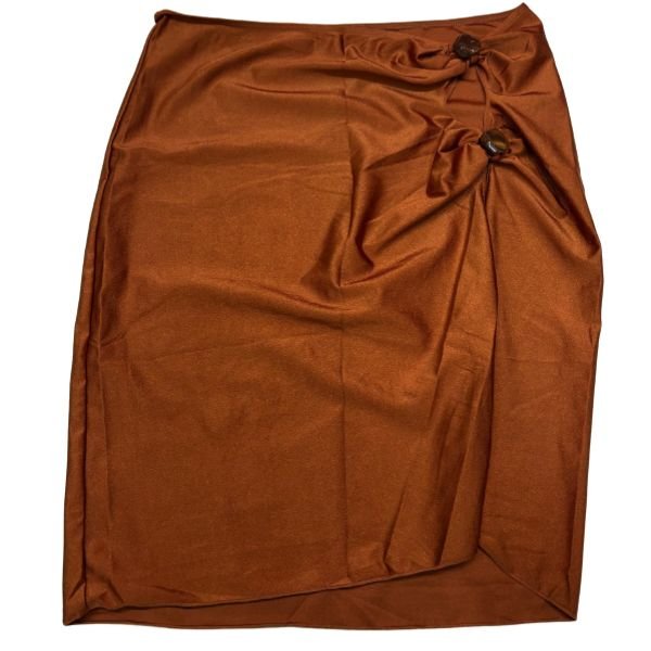 A saia pareô midi é ideal para quem procura um complemento elegante ao conjunto. Com seu design envelope e botão de madeira para fechamento, ela transita perfeitamente entre saída de praia e roupa sofisticada para um happy hour à beira-mar. Essa peça única não só oferece liberdade de movimento, como também exibe detalhes em madeira que se alinham com o estilo rústico-chique do conjunto.
