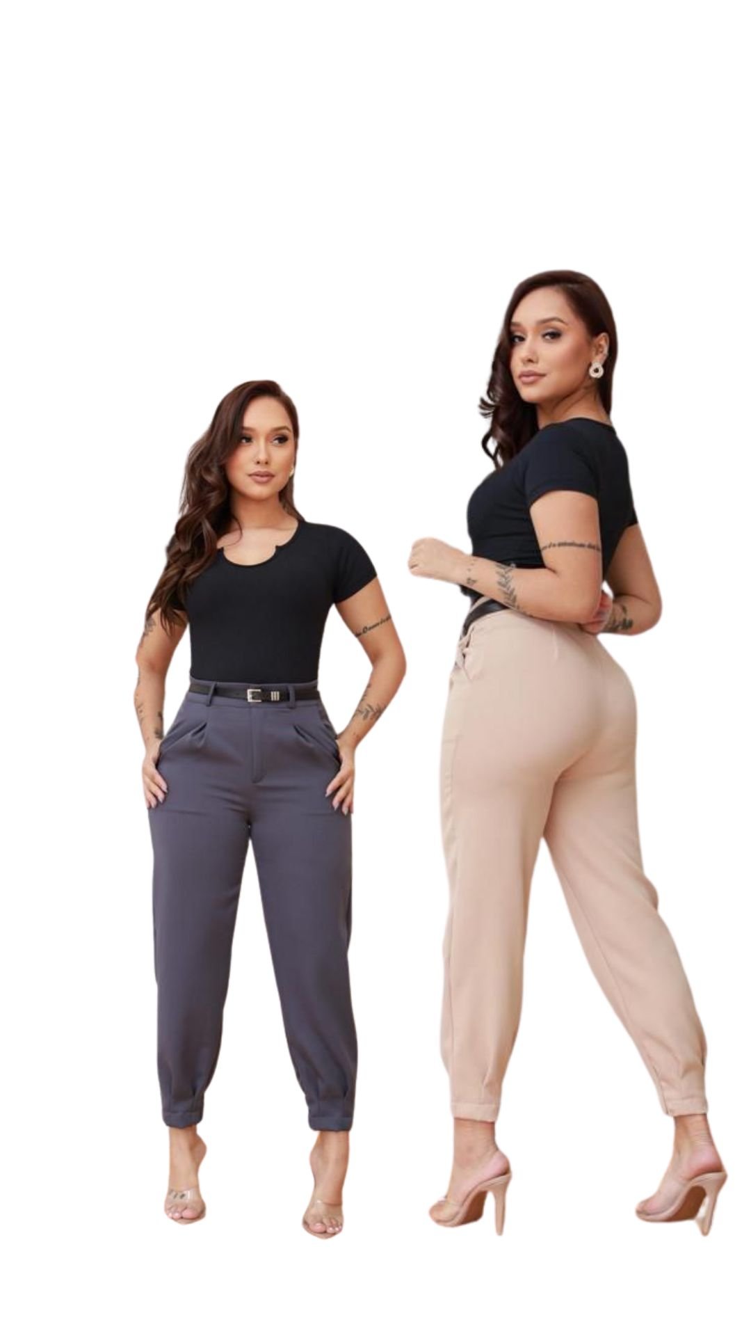 Descubra o máximo de conforto sem abrir mão da sofisticação. A Calça Alfaiataria Jogger une o corte impecável da alfaiataria (com tecido estruturado, cintura alta e bolsos faca) com a praticidade e o caimento despojado do estilo jogger (barras com elástico ou punho ajustado).