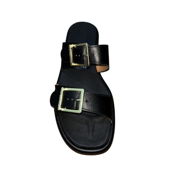 Destaque: Solado flatform e detalhes sofisticados com fivelas metálicas ajustáveis.